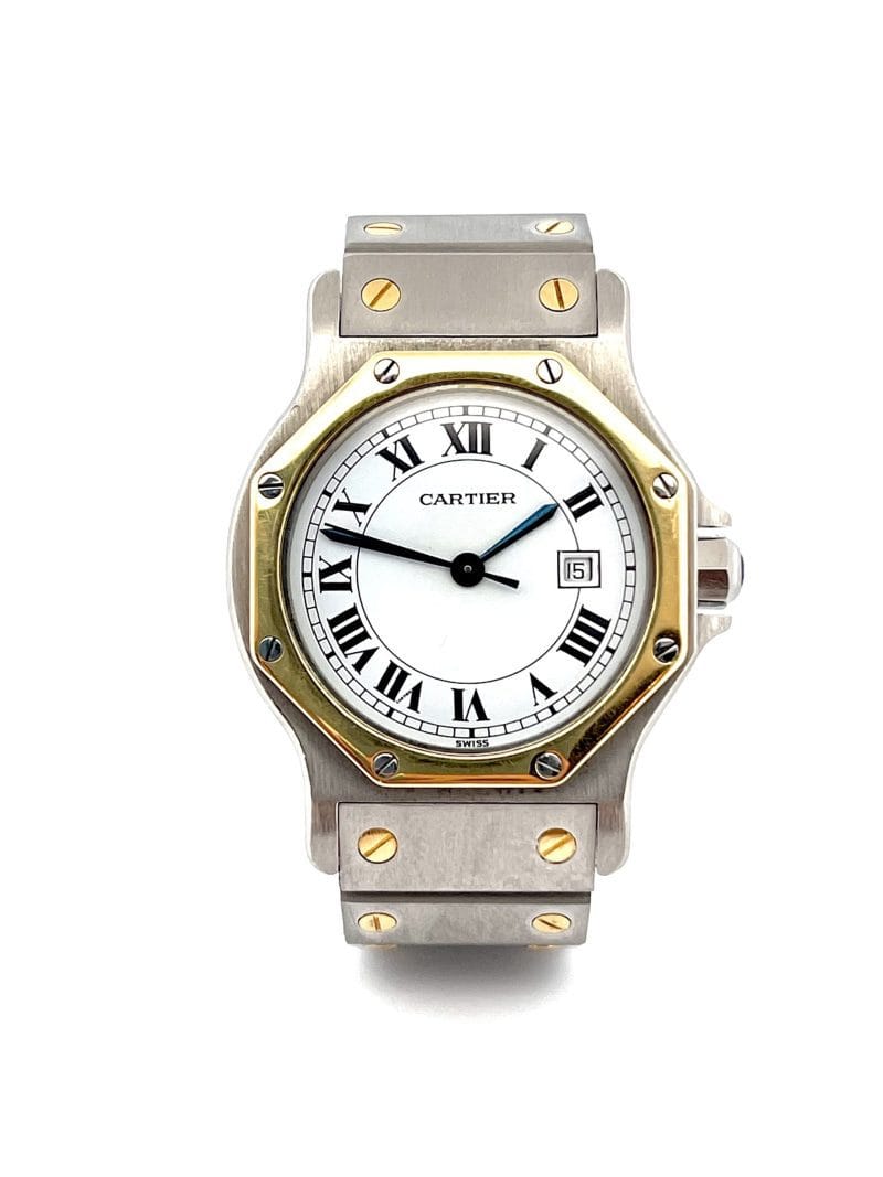Cartier Santos Octagon z lat 80. to prawdziwy klasyk i kawałek historii zegarmistrzostwa. Nasz luksusowy zegarek zachowuje charakterystyczne cechy Santos, z eleganckim dodatkiem ośmiokątnej koperty. Ten vintage model zachowuje autentyczność epoki, będąc zarazem wyrazem stylu i prestiżu marki Cartier . Zegarek Wykonany z najwyższej jakości materiałów, takich jak stal szlachetna i żółte złoto. Klasyczna tarcza w kolorze białym, z delikatnymi zdobieniami i czarnymi wskaźnikami godzin, dodaje zegarkowi nie tylko funkcjonalności, ale również estetycznego uroku. Oryginalna stalowa bransoleta z charakterystycznymi elementami zapewnia komfort noszenia. Zegarek prezentuje elegancję i trwałość – cechy charakterystyczne dla Cartier. Choć prezentowany model uznawany jest za męski, świetnie wygląda również na kobiecym nadgarstku.